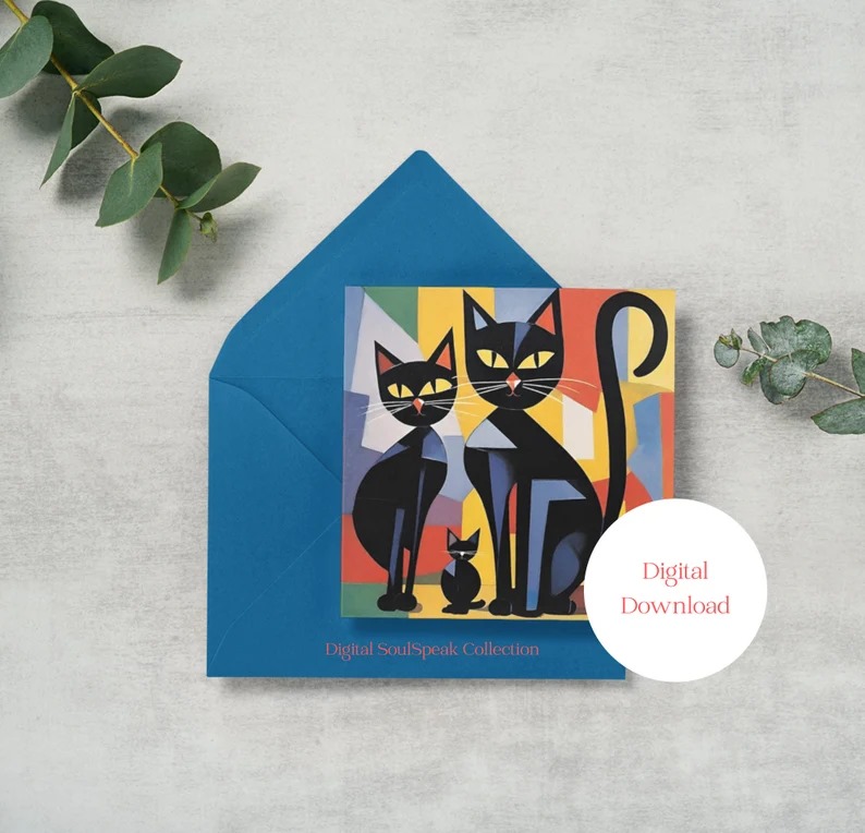 Take your pick from 4 sets of 5 cards. Each one is normally priced $7.50 but is on sale now at 25% off. From these 4 sets, you’ll find 20 different wonderful AI-generated designs. Click through to the listings on Digital SoulSpeak on Etsy…good luck deciding which set you want! :0)